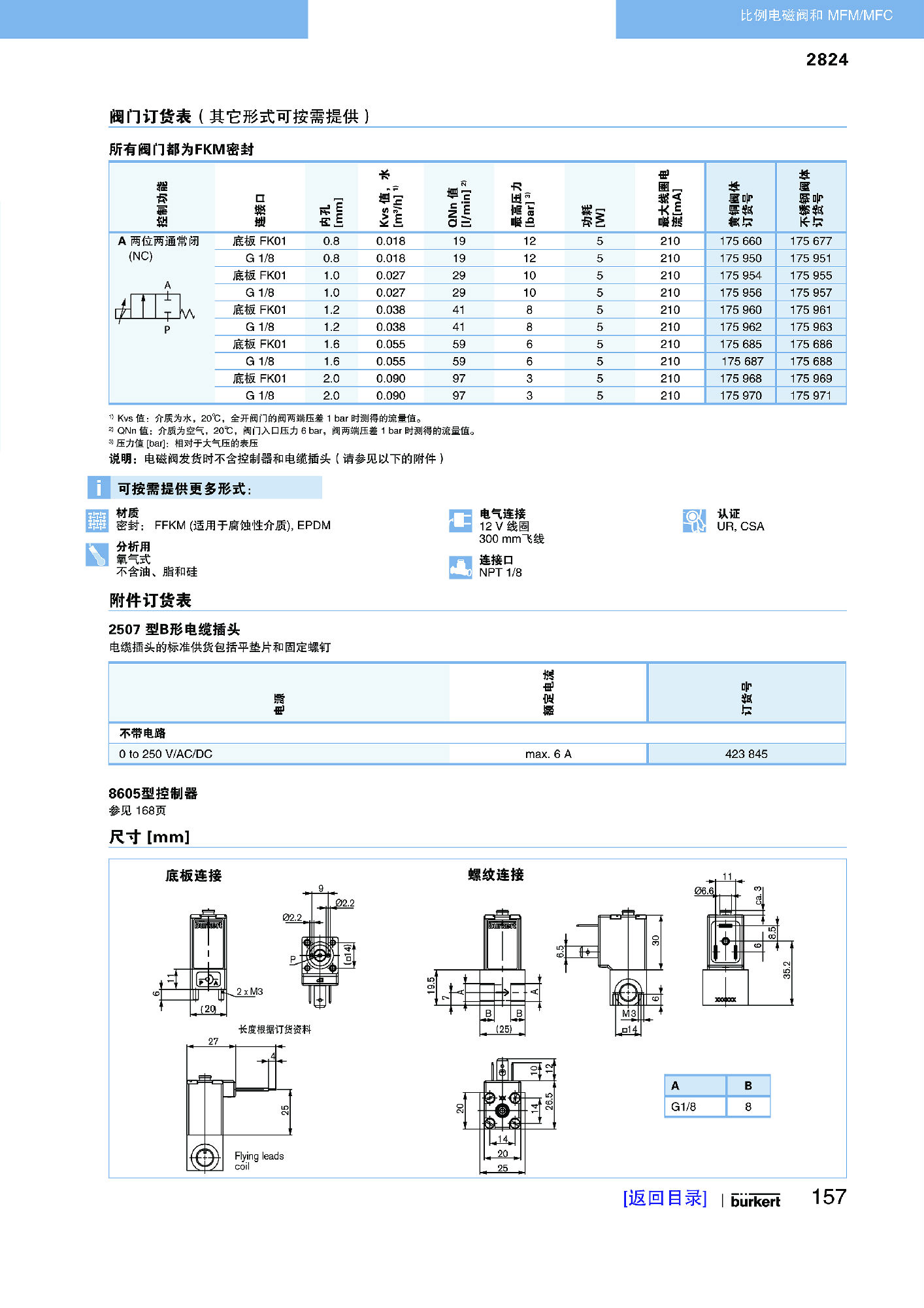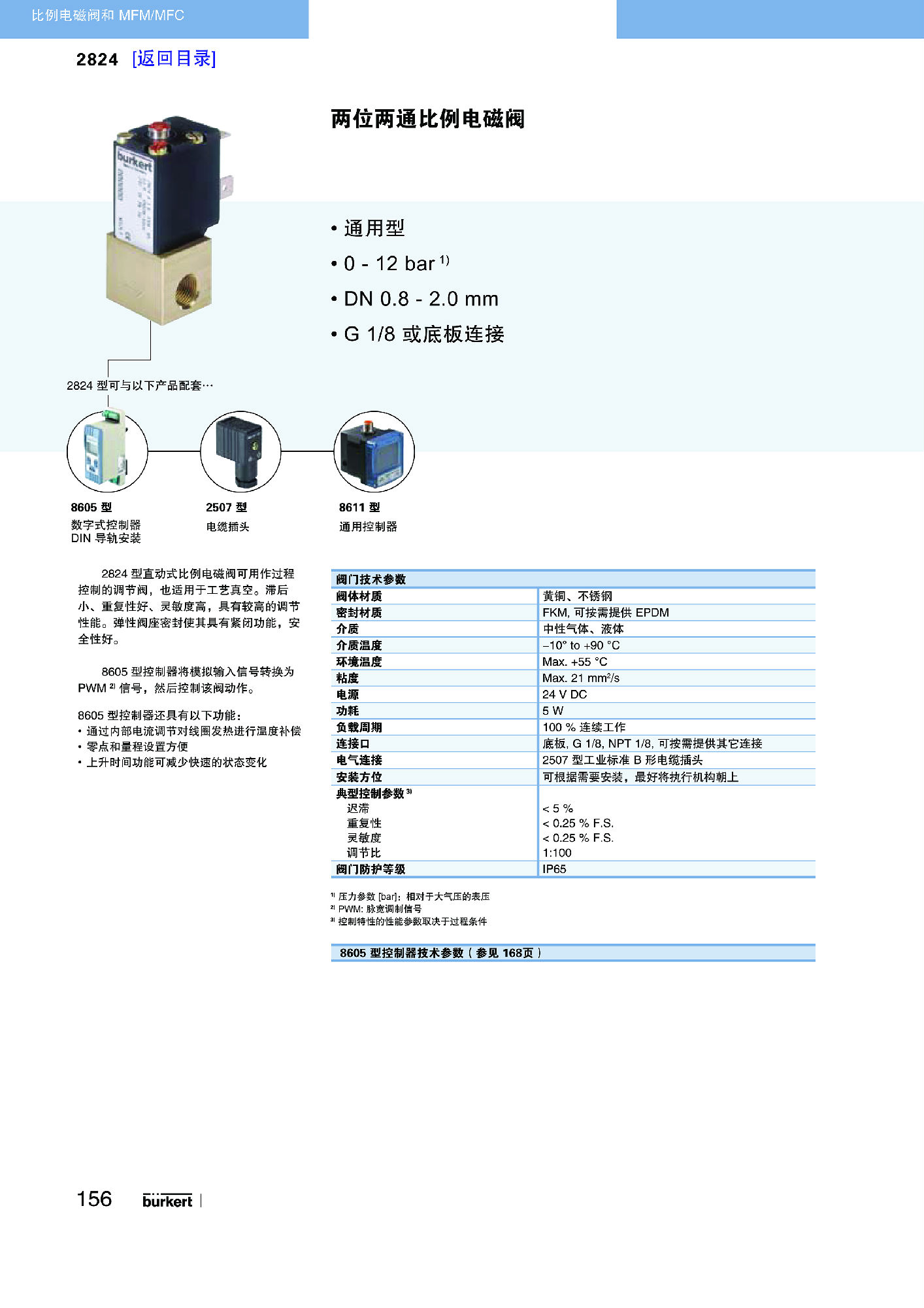 通用的0 ...12 bar1)DN 0.8...2.0 mm1/8” 或法兰