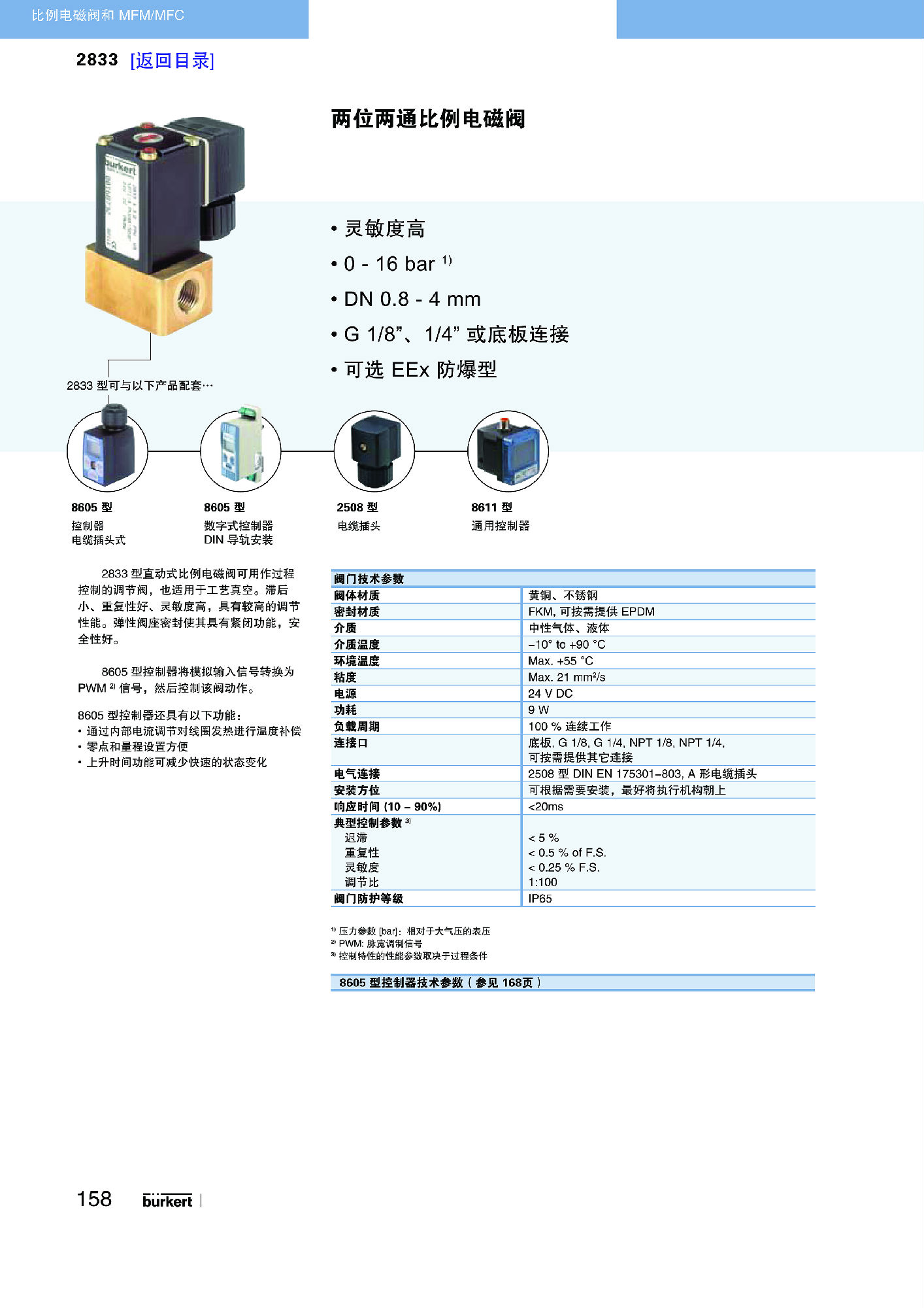反应灵敏度高0 ...16 bar1)DN 0.8...4 mm1/8”、1/4”或法兰EEx 许可,可选
