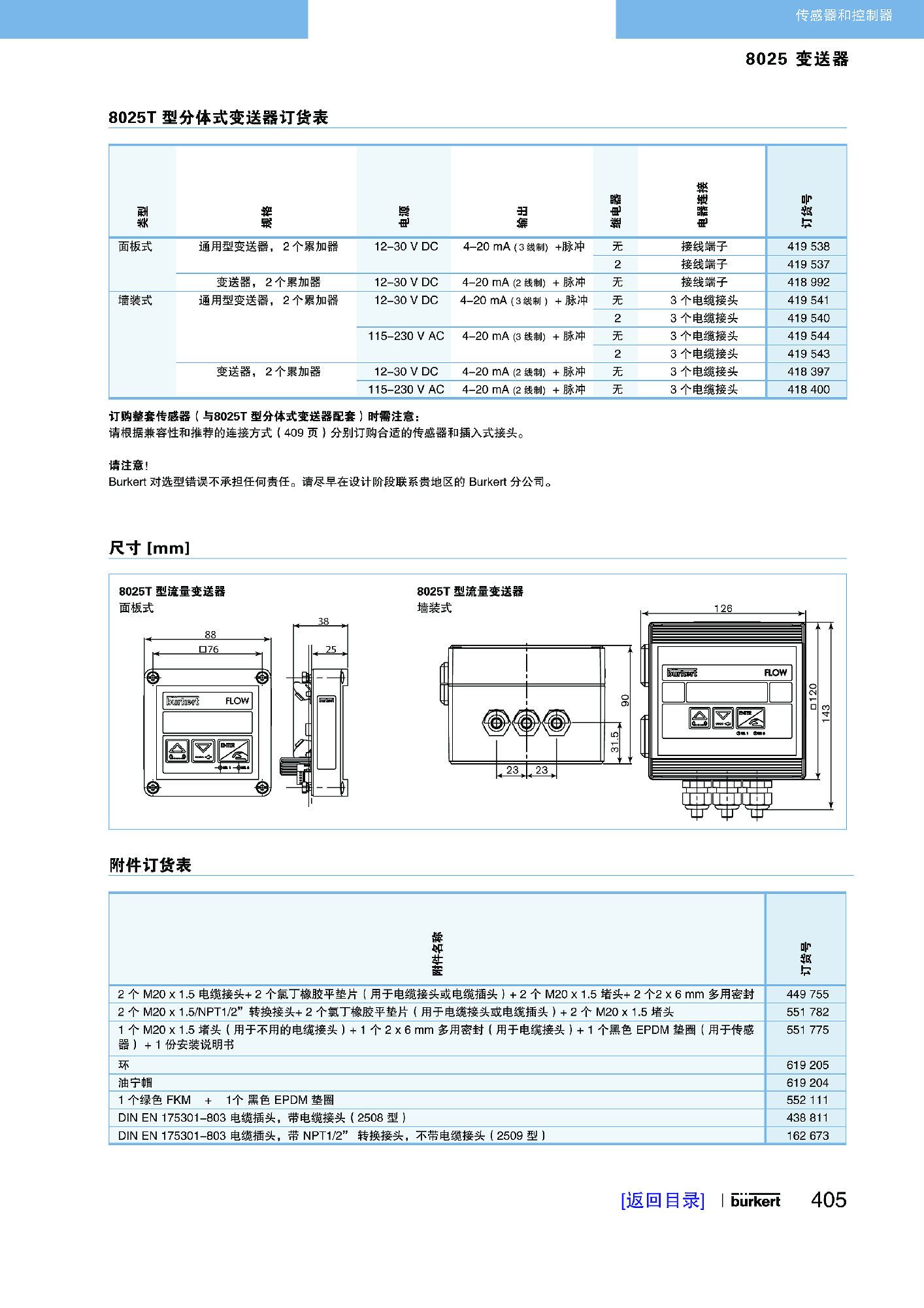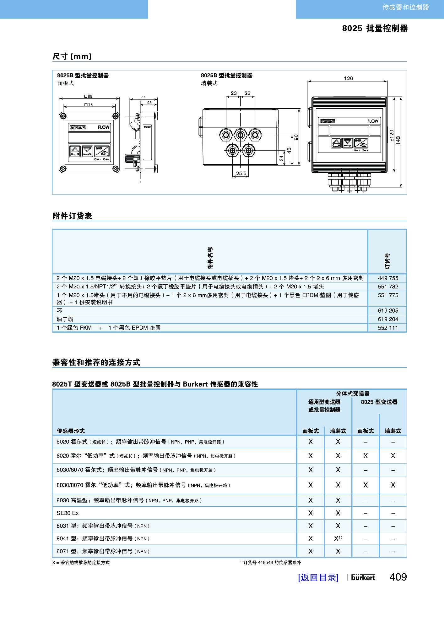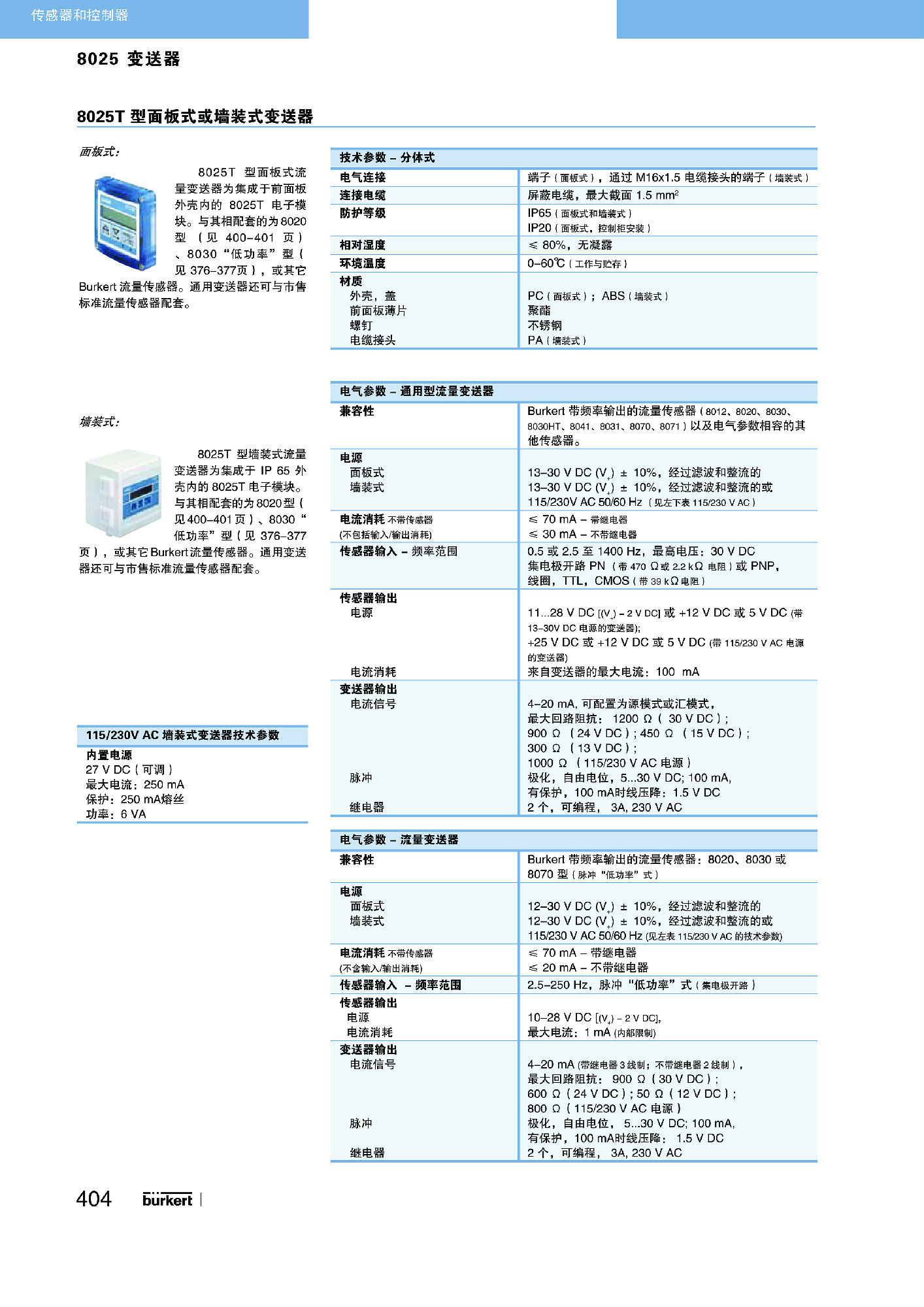 计量仪特别适合中性和弱侵蚀性的、不含固体的液体。计量仪具有不同的结构:带有集成叶轮式传感器的紧凑型计量仪,用于与 Bürkert 8020 / 8030 / 8031 / 8041 / 8071 传感器或其他传感器相组合的、适合开关柜或现场安装的分离式计量仪;带有开路集电极输出端、簧片继电器输出端或线圈的传感器,可利用这种计量仪工作。