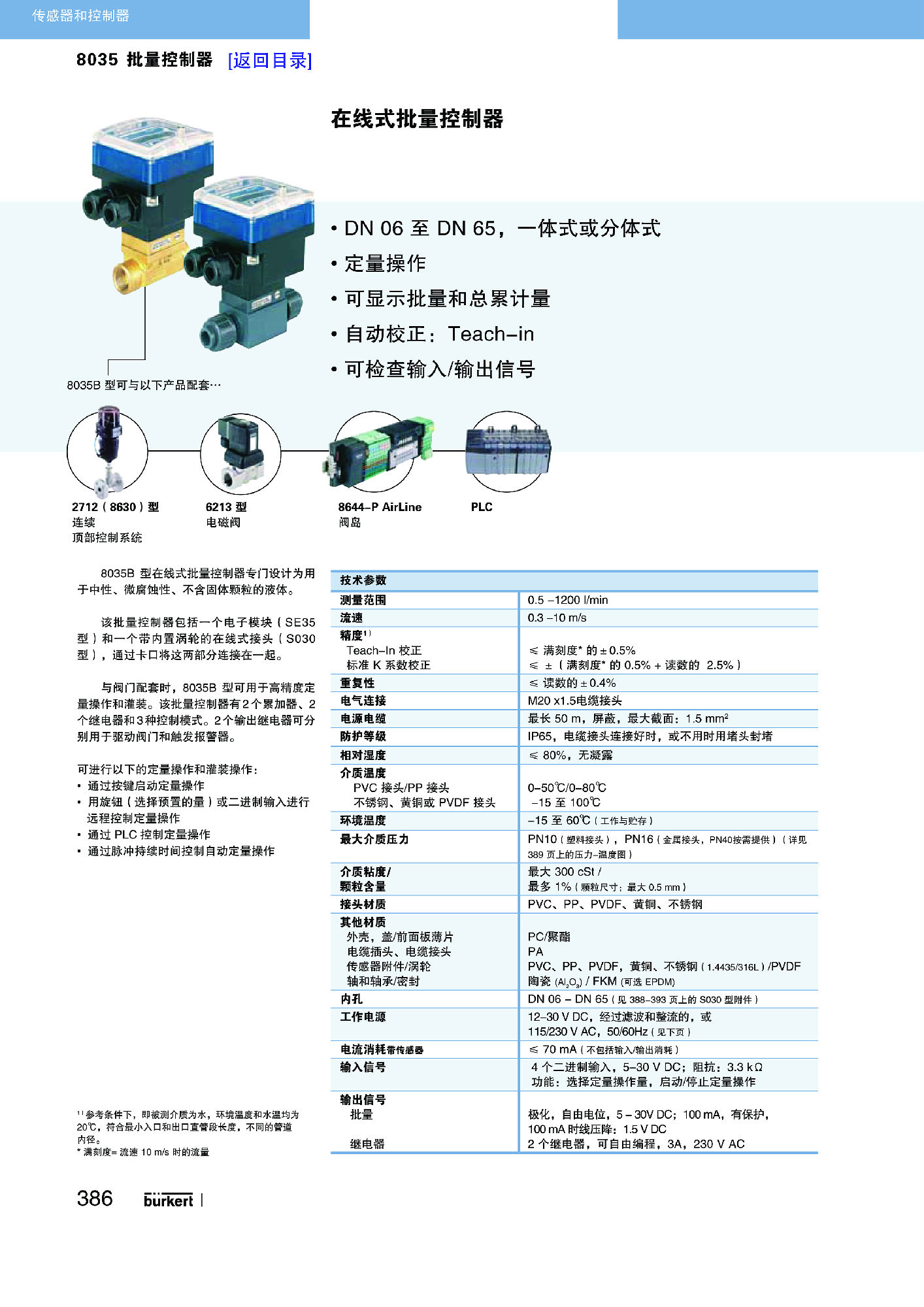 紧凑型结构,适合 DN06 至 DN65显示流量和体积(利用两个计数器)通过 TEACH-IN 自动校准检查所有无实际流量的输出端