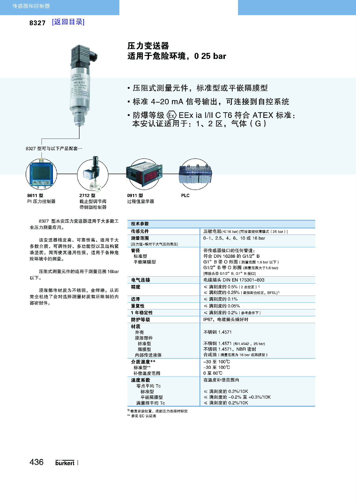 德国burkert宝德主营产品如下:Burkert换挡阀、旁通阀、电磁阀、微流量阀、升降式衔铁阀、二通摇杆阀、隔膜阀、活塞阀、气动控制装置、活塞滑阀、脉冲阀、阀岛、隔膜阀块、开关柜、截止阀、角座阀、底部排放阀、球阀、蝶阀、先导阀、调节阀、开关、止回阀、比例阀、流量调节器、传感器、流量测量仪、流量计、变送器、隔膜泵。