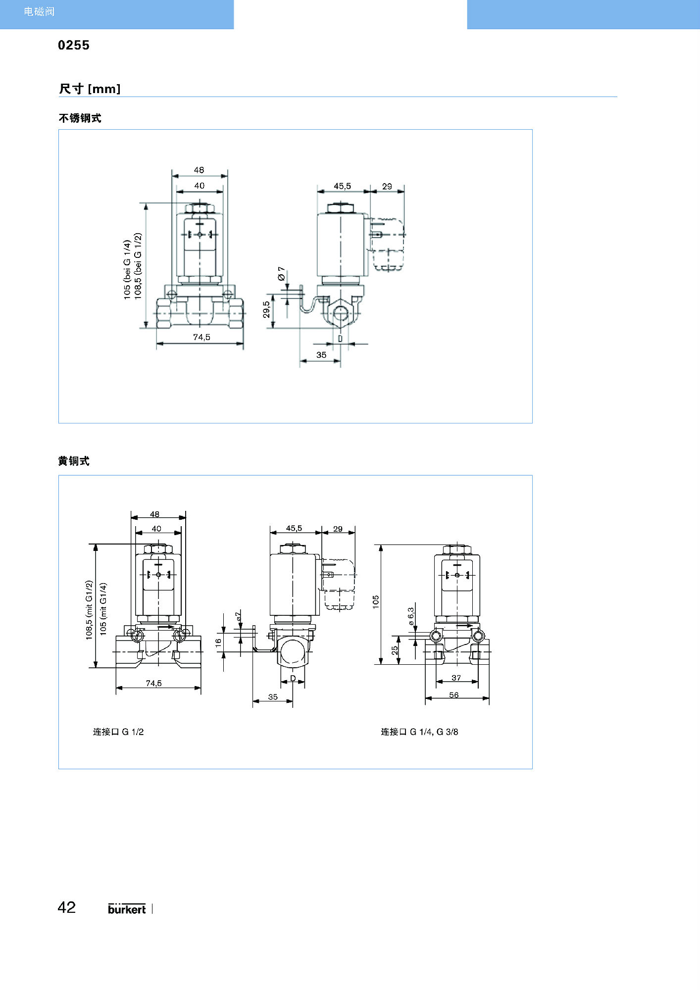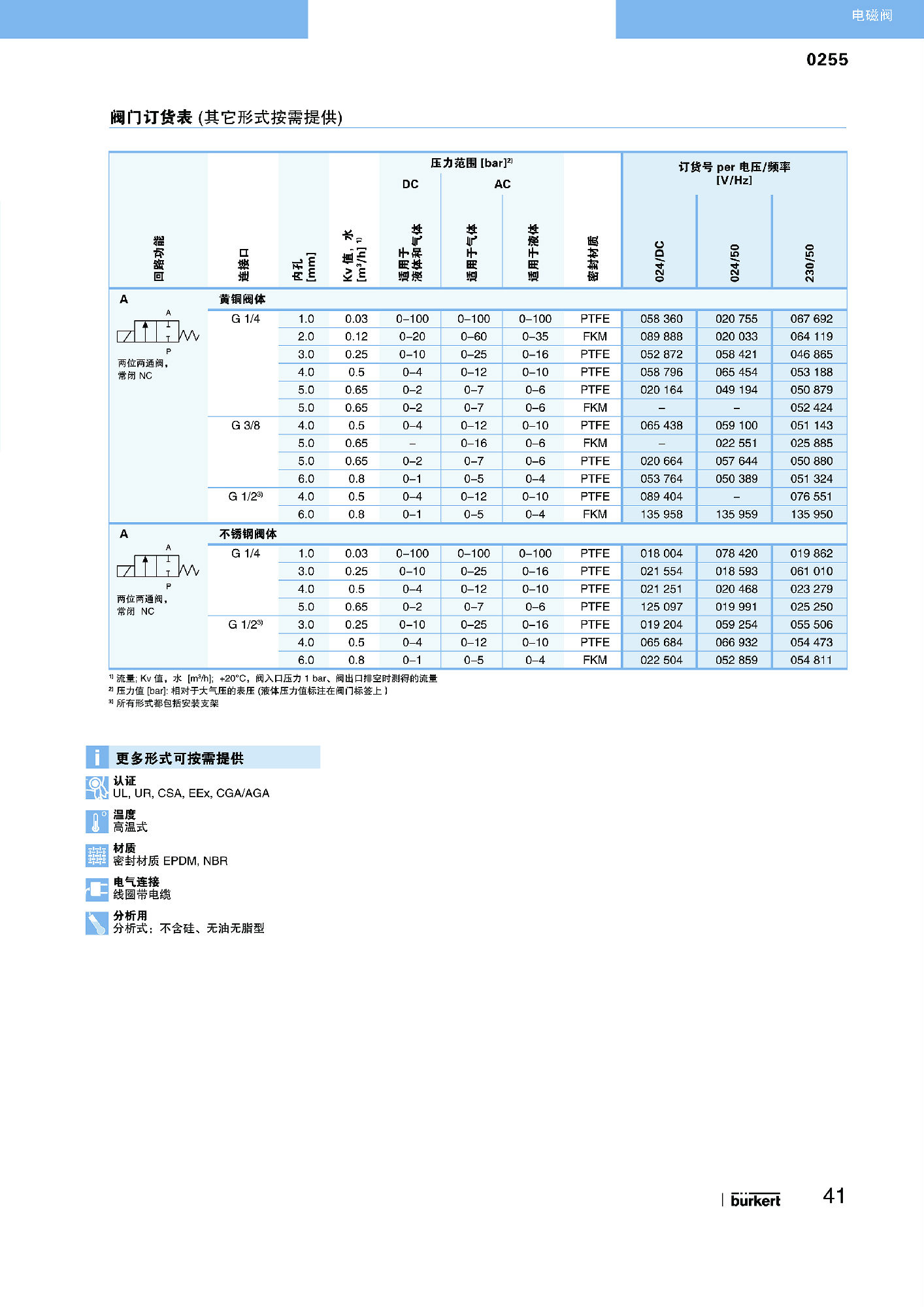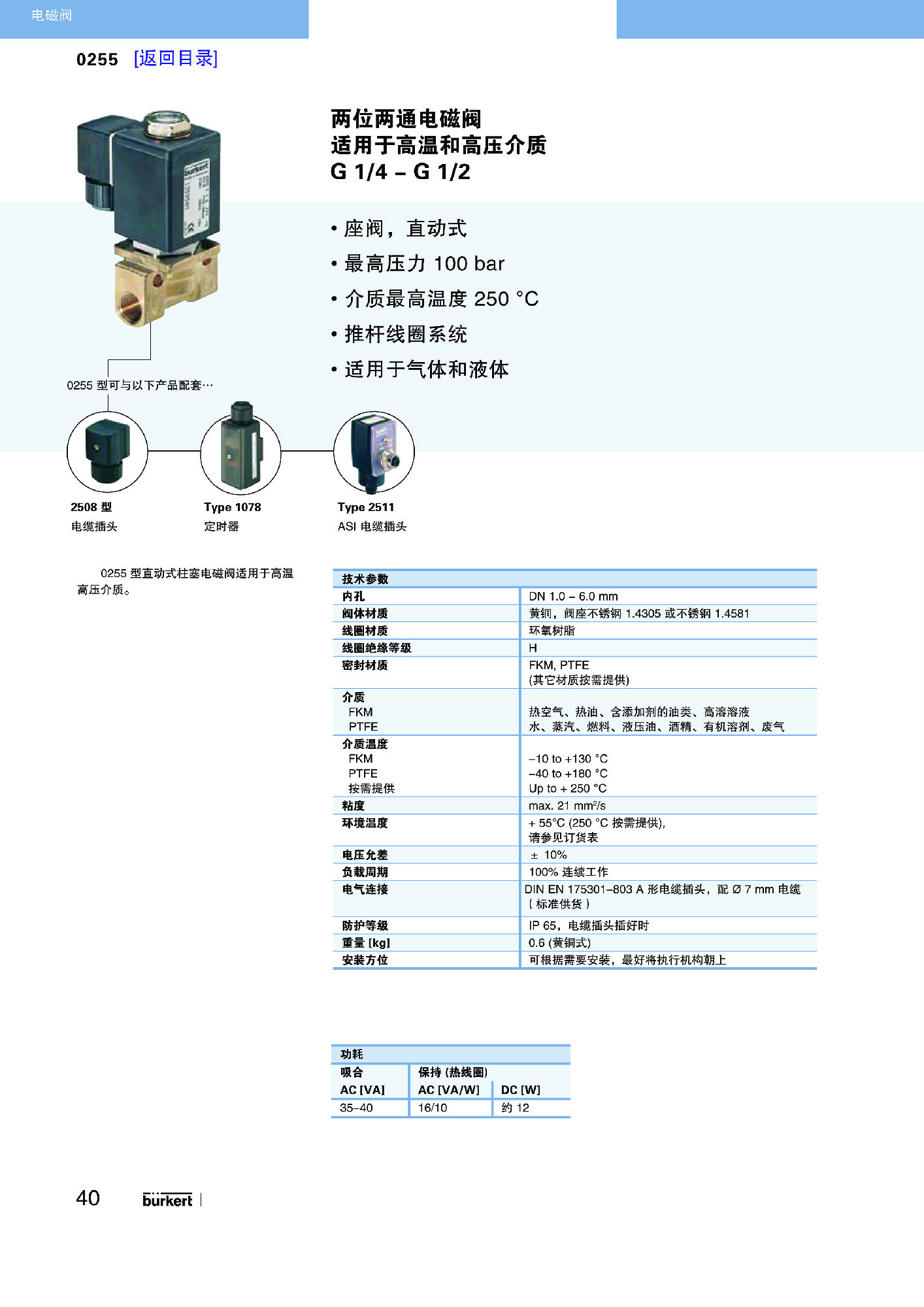 型号 0255 的直动式升降式衔铁电磁阀也适合高压和高温。