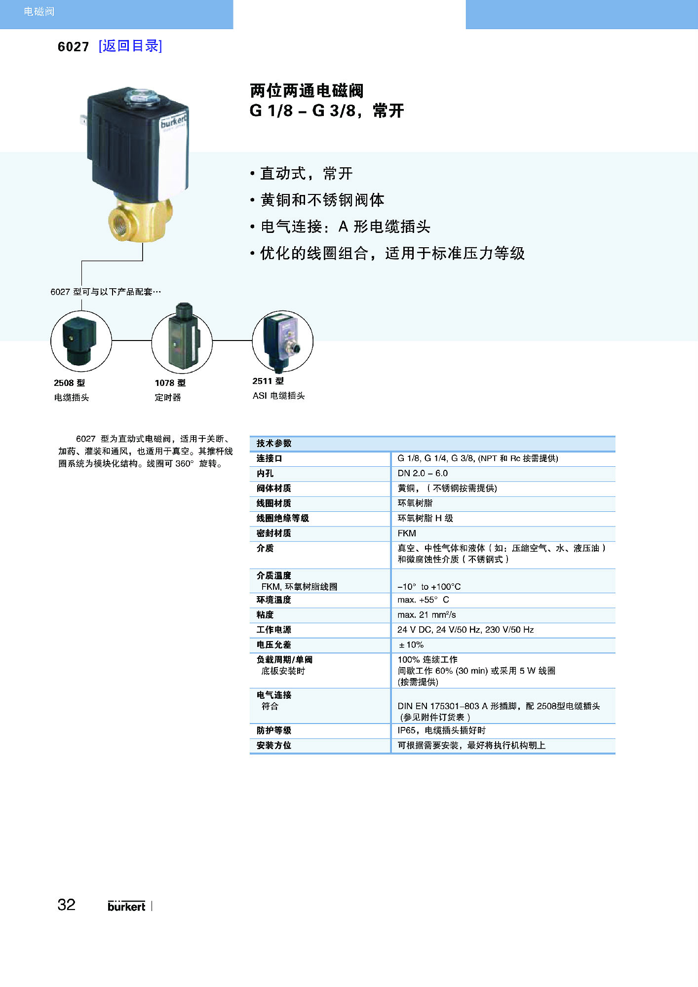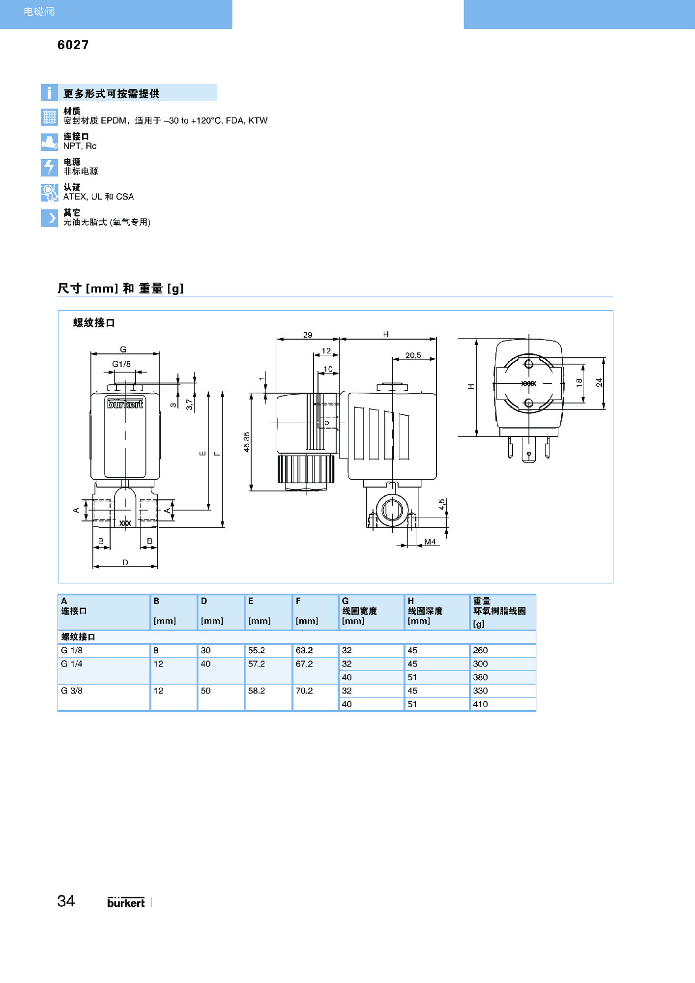 直动式电磁阀,最大通径 DN 12防震线圈采用焊接铁心导管,提高密封性能防爆式