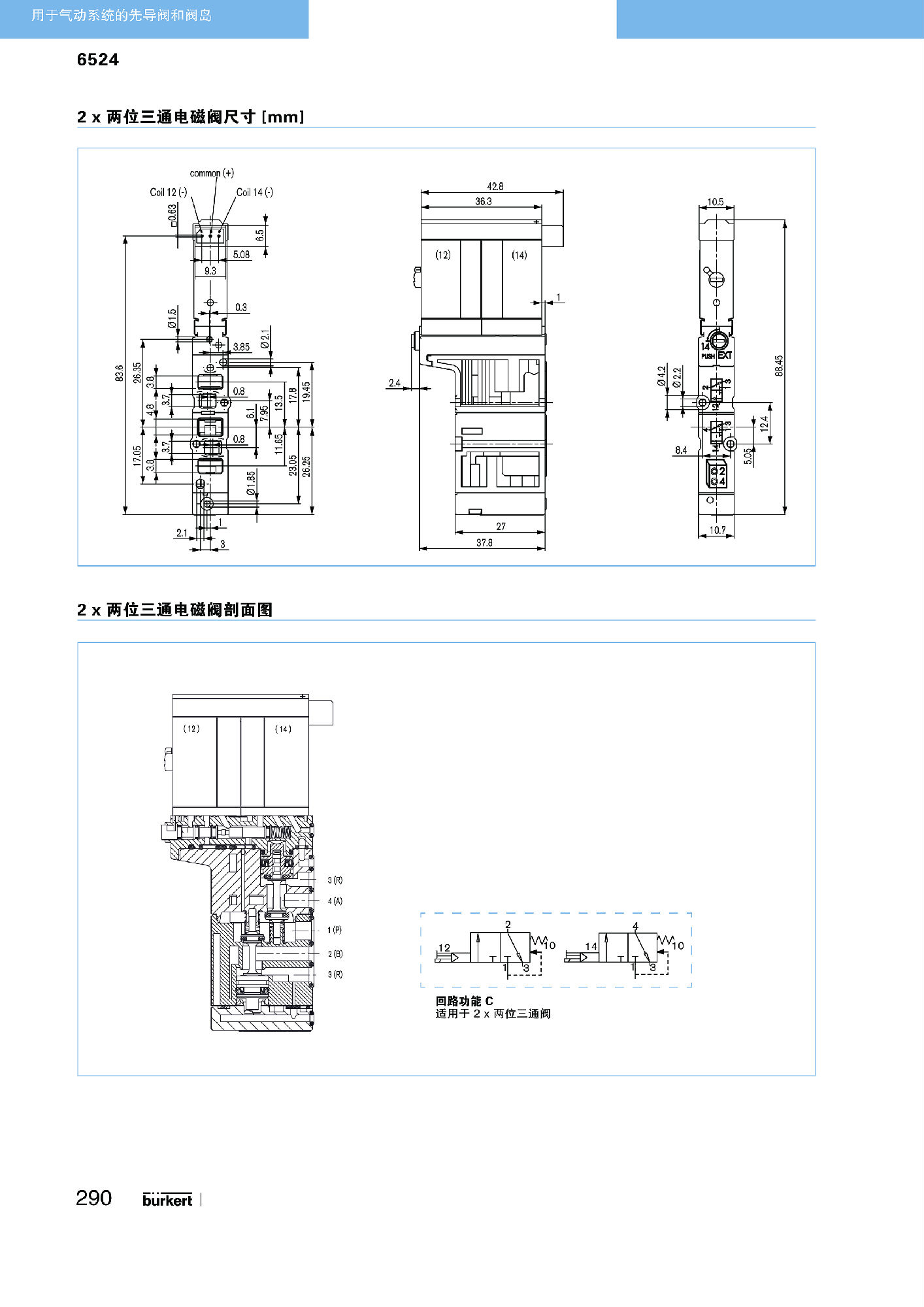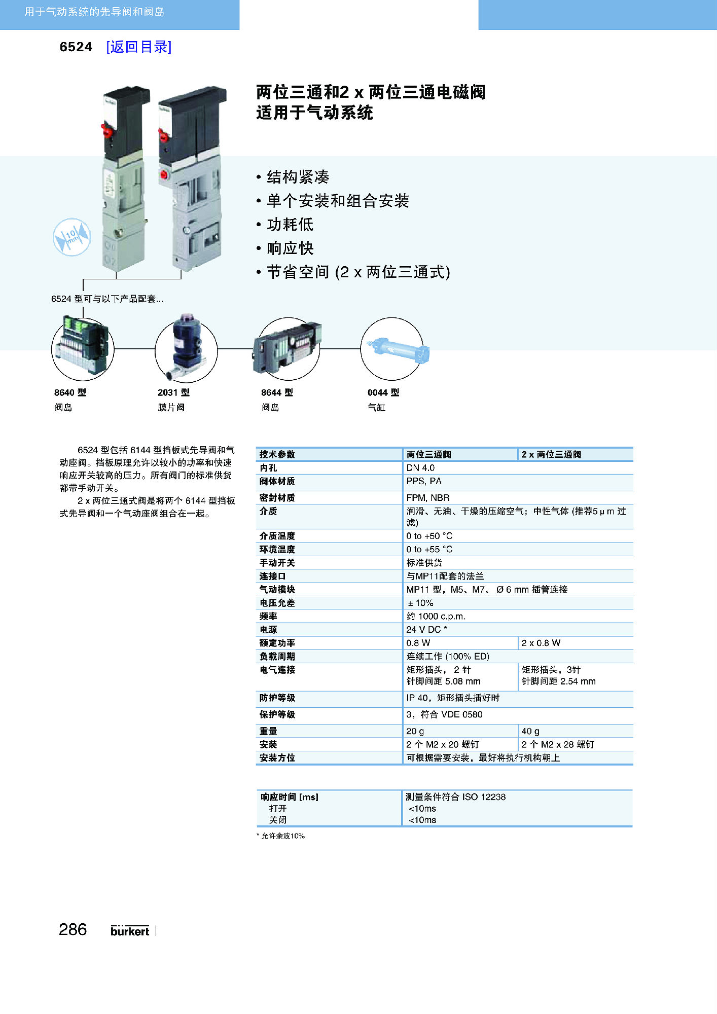 紧凑型结构单个安装或组块安装低电功率消耗开关时间短更小的空间需求(2 个二位三通结构)