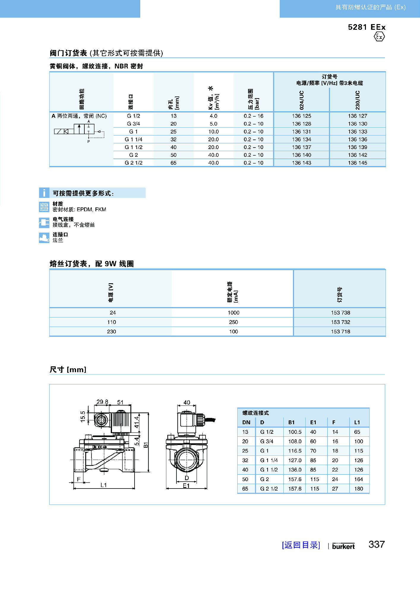 重叠的线圈系统黄铜外壳,符合 DIN 2501 的套头或灰铸铁法兰