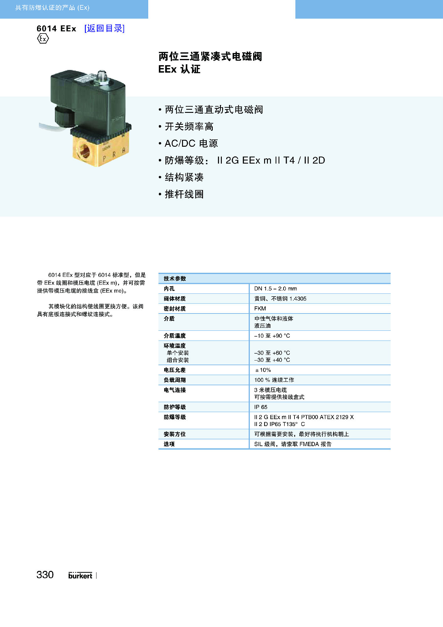 【中文样本】6013 EEx i型直动式两位两通柱塞电磁阀