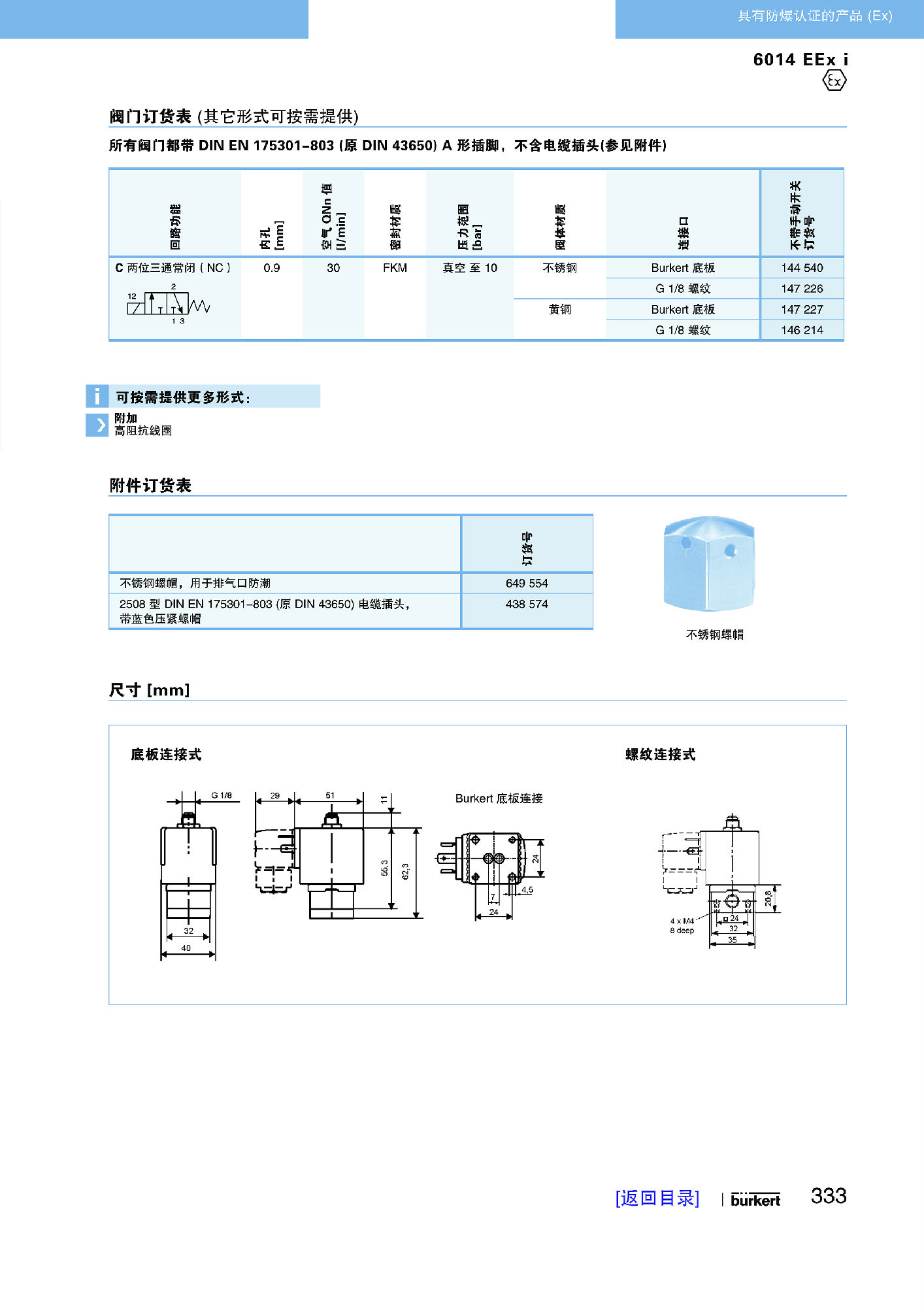 【中文样本】6014 EEx型直动式两位三通柱塞电磁阀