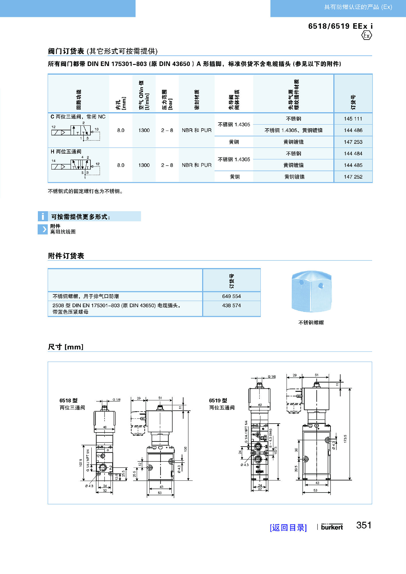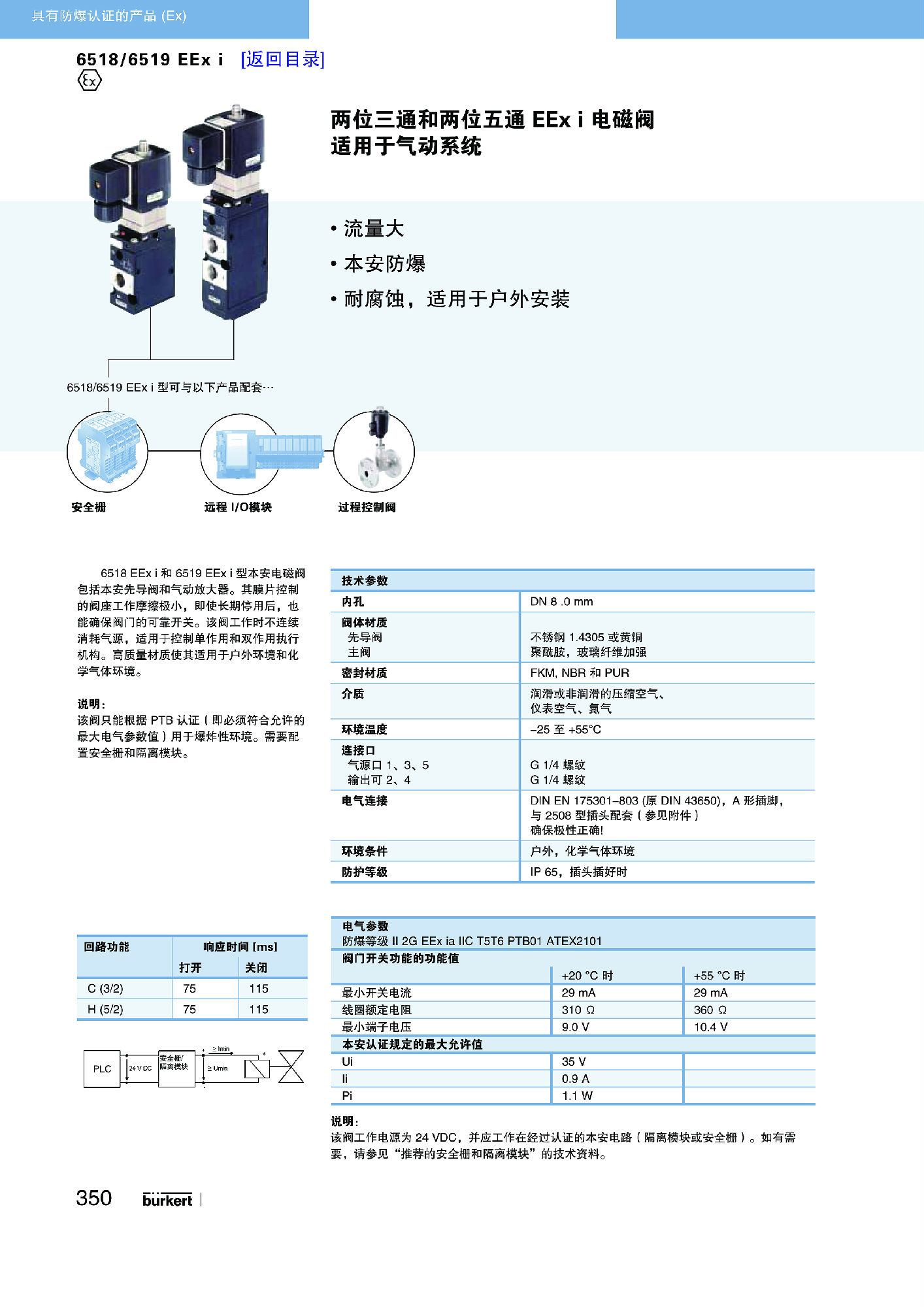 【中文样本】6518-6519 EEx i型适合气动系统的先导式二位三通电磁阀