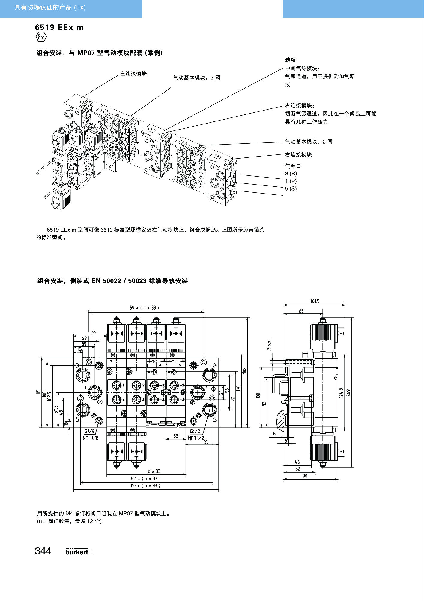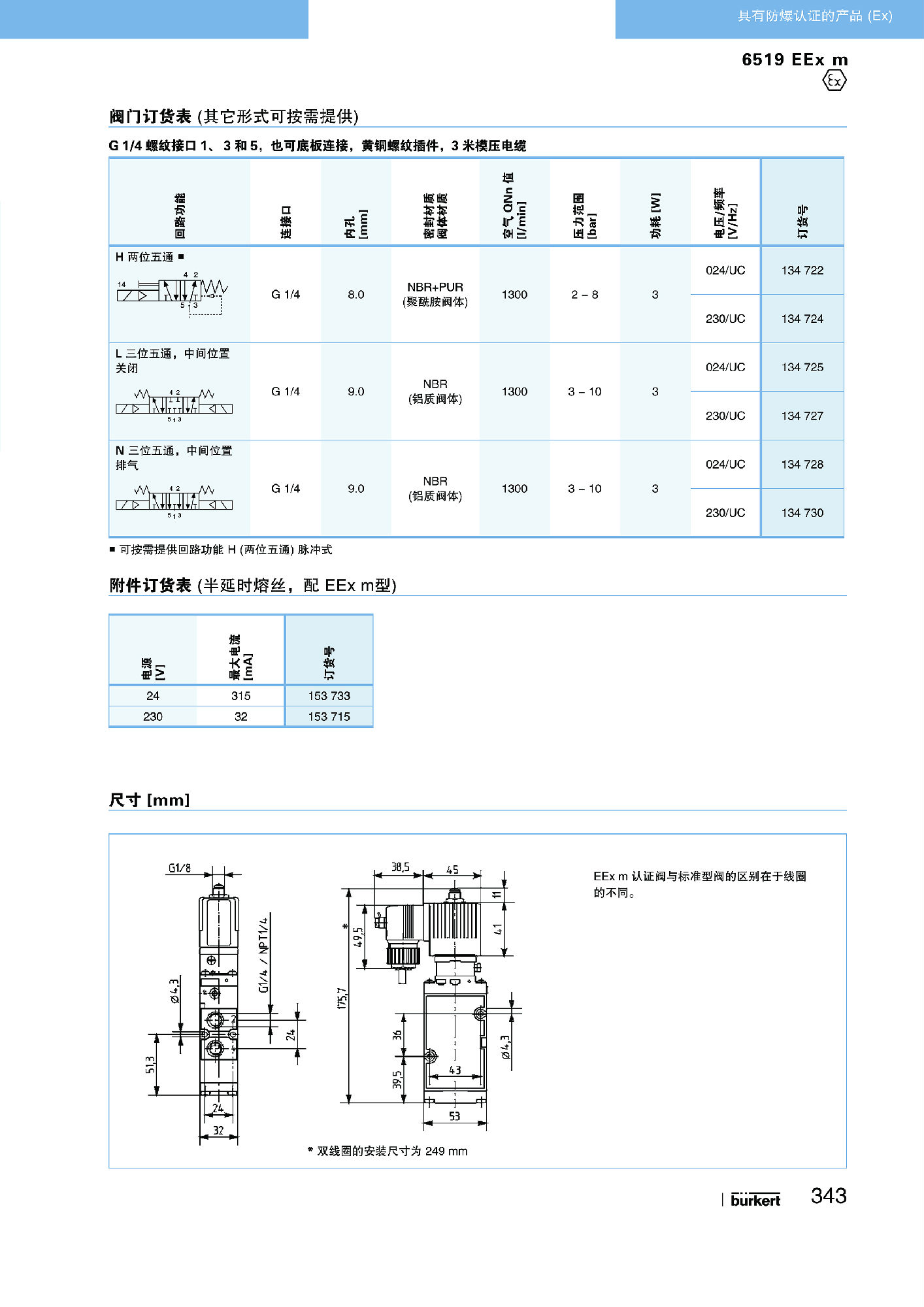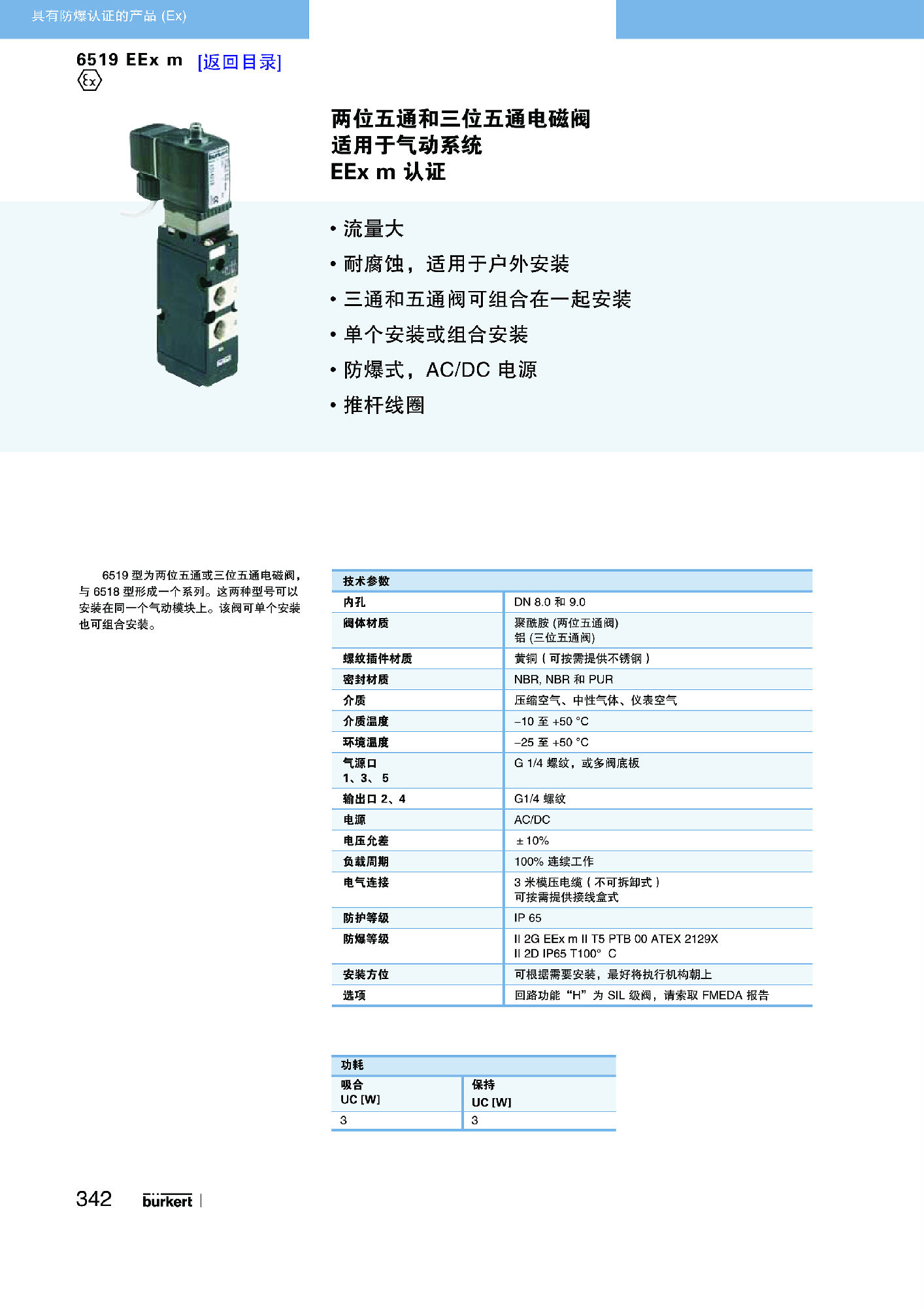 【中文样本】6519 EEx m型适合气动系统的先导式二位五通和二位三通电磁阀