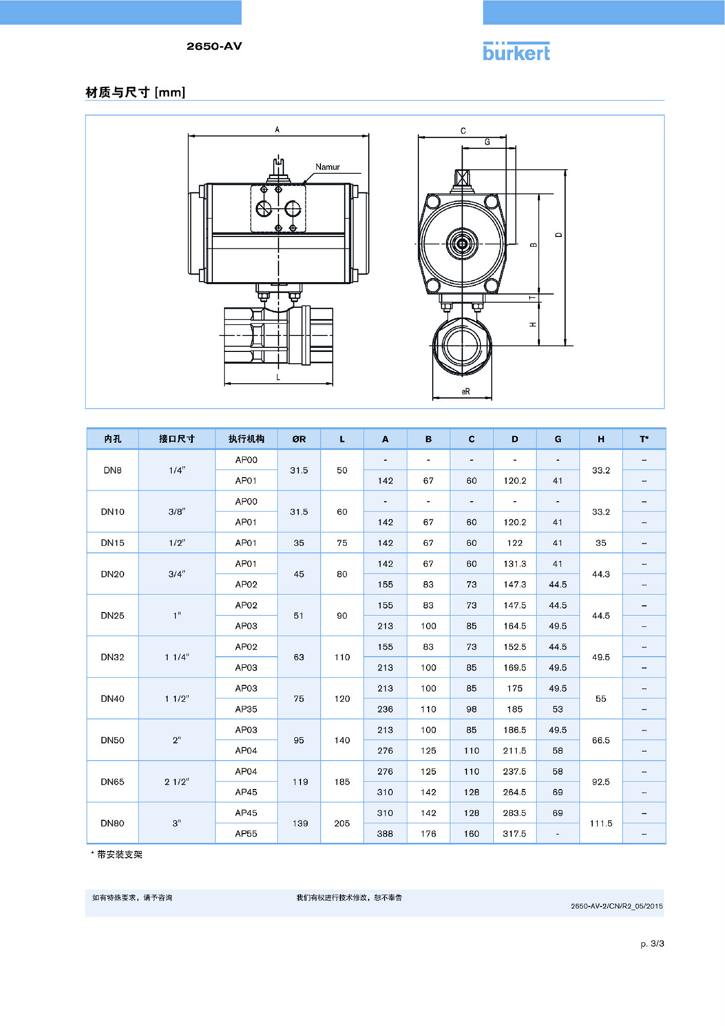 【中文样本】2650型二位二通和二位三通球阀-球阀+执行器--螺纹接口