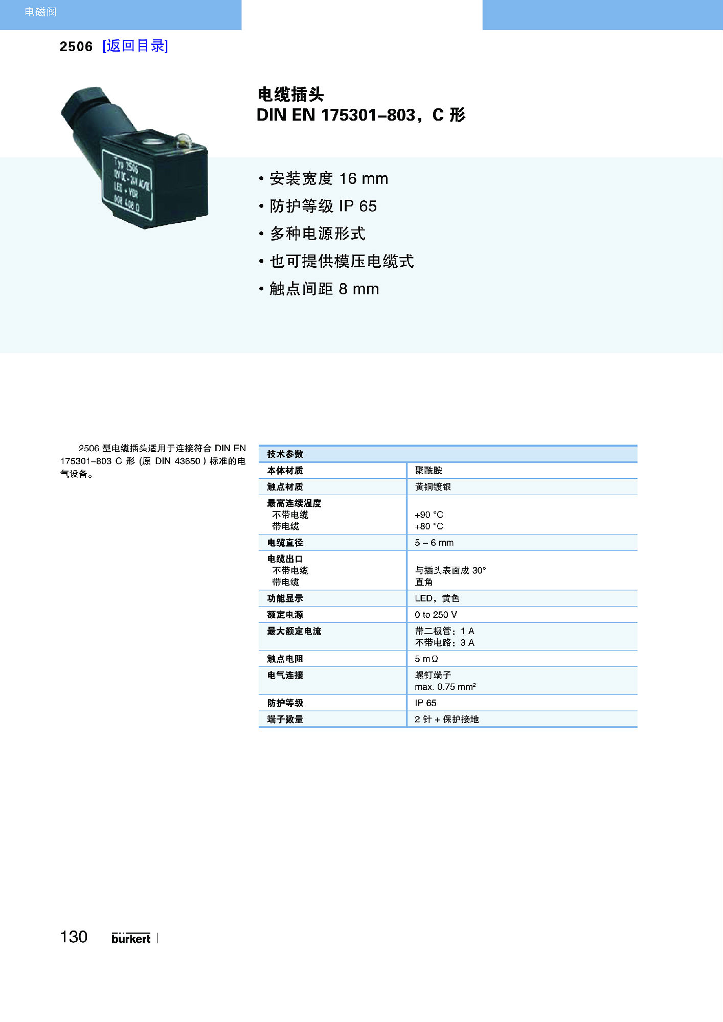 1)防护级 IP652)大量的结构类型3)触点间距为 8 mm