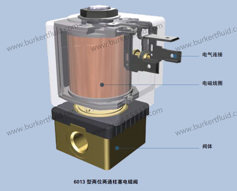 burkert 直动式柱塞电磁阀的内孔尺寸从0.05mm到6mm都有,具有AC和DC电源、各种阀体材质和接口形式。