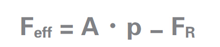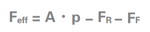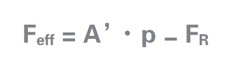 Feff = A·p - FR - FF