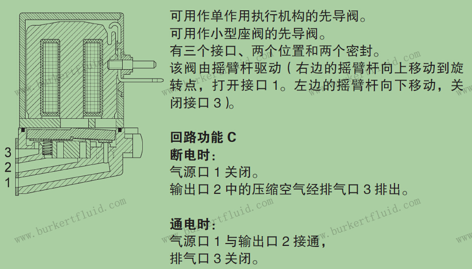 【burkert中文网站】6106型直动式两位三通摇臂阀结构原理图