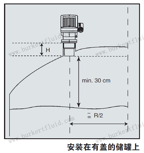变送器不要安装在盖子正中,而应安装在偏离正中的位置(约为储罐半径的一半处)。
