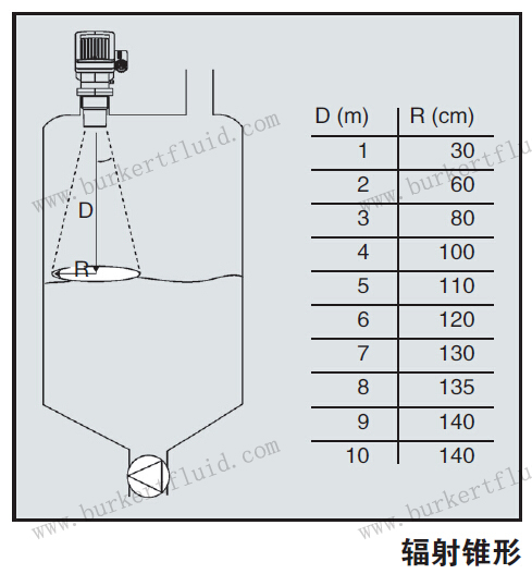 超声波信号的辐射角为8°。如有可能,所有的附件都应位于该辐射锥形之外。否则会导致测量误差(请参见“回波过滤器”)。