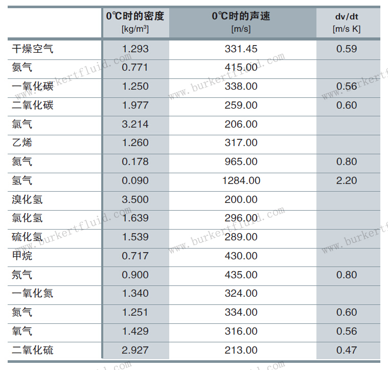 各种气体及其声速对照表右表为各种气体及其在标准温度下的声速和温度系数。