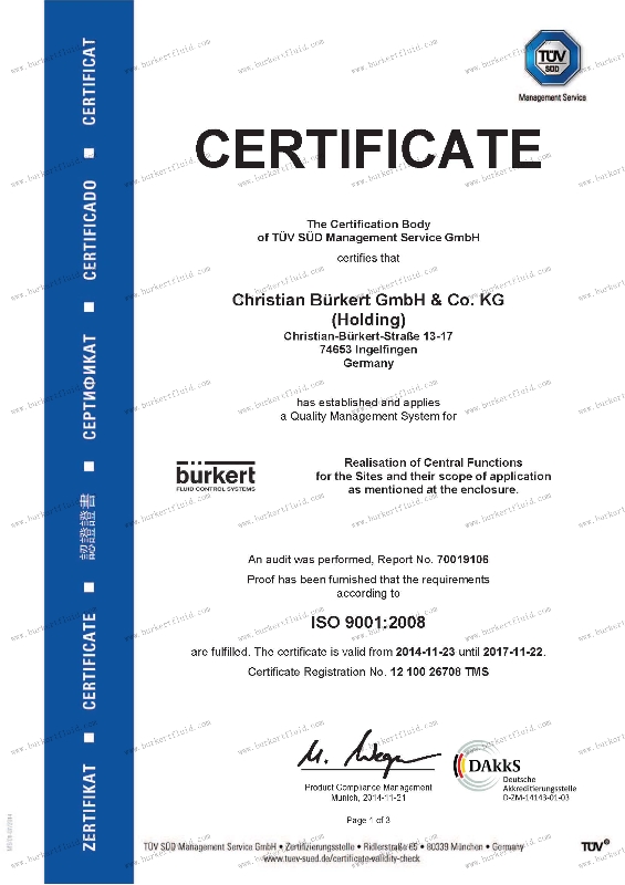 作为技术领先的企业,Burkert生产的"环氧树脂封装线圈"以及"电缆连接插头 "已成为国际ISO质量标准。而Burkert发明的 "先导衔铁电磁系统""摇臂式电磁阀"及"脉冲线圈"完全处于世界先进水平。